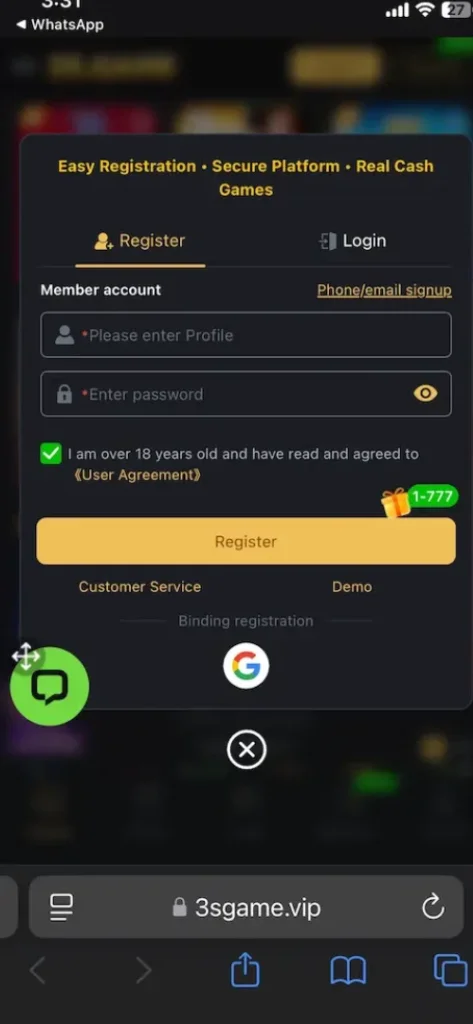 Visit the official 3S-GAME website or click the download link provided on the platform’s page Download the APK file directly to your Android smartphone Open the downloaded file and allow installation from unknown sources in your phone settings Launch the app after successful installation Click on the “Register” button on the home screen Enter your valid mobile number in the registration field Create a strong and unique password for your account Enter the referral code if you were invited by an existing member Verify your phone number through the OTP sent to your mobile Click “Submit” to complete your registration successfully Your Rs577 welcome bonus will be credited to your account instantly Log in and explore the dashboard to start your earning journey.